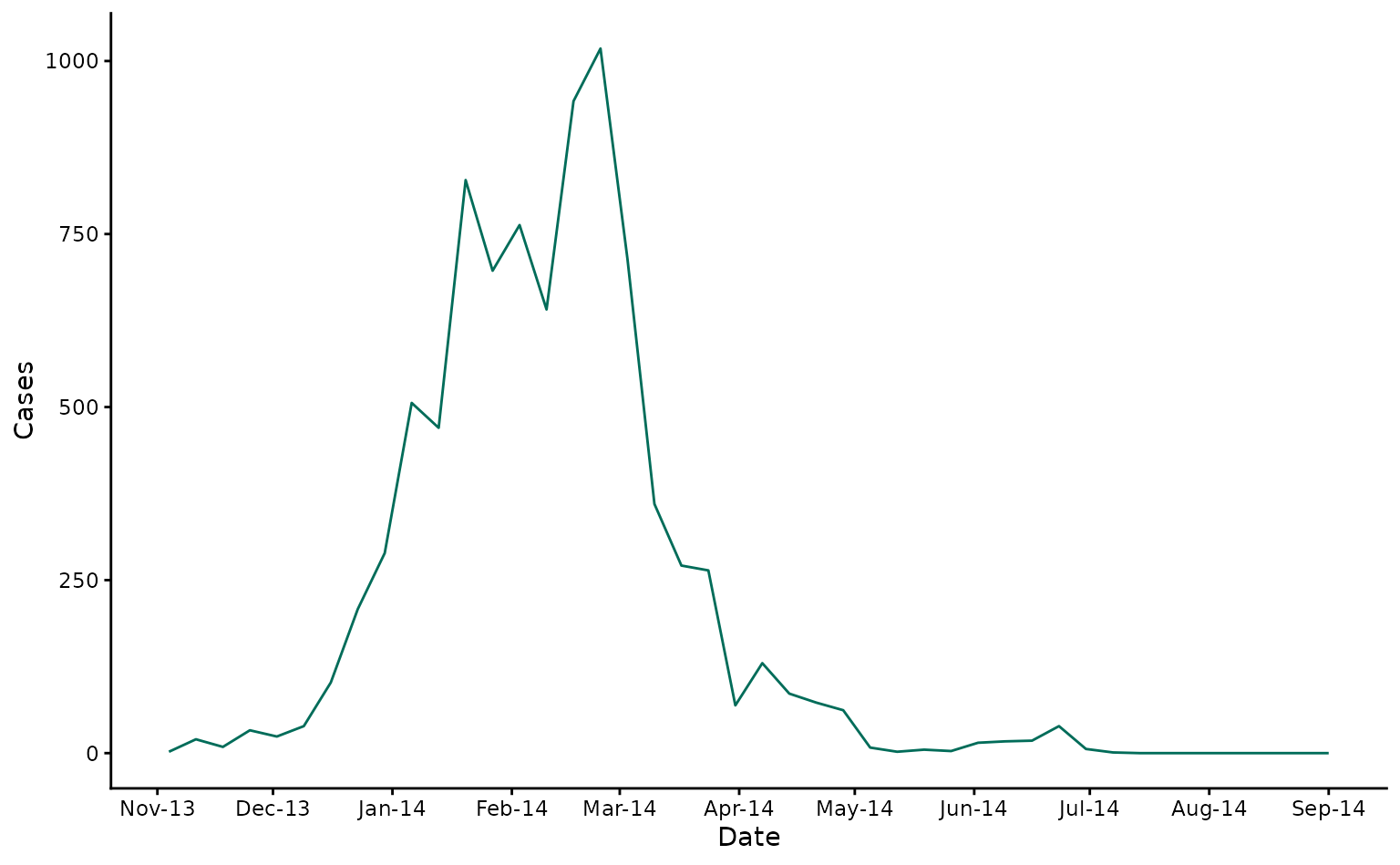 ggplot2::geom_line(ggplot2::aes(x = date, y = cases), col = "#016c59") +
