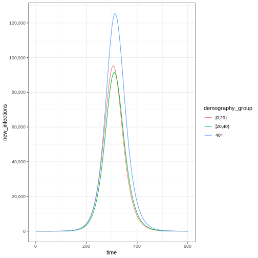 ggplot(aes(x = time, y = new_infections, colour = demography_group)) +