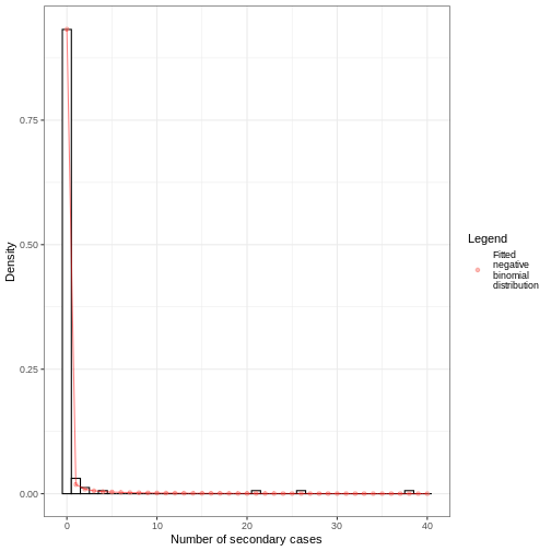 - Utiliser fitdistrplus pour estimer empiriquement la distribution de la descendance à partir de la distribution du nombre de cas secondaires.