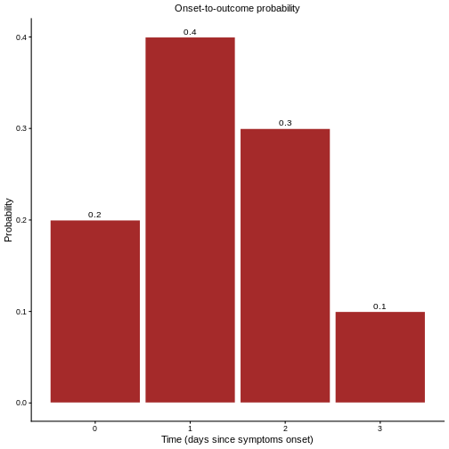 In practice, the delay distribution \(f_s\) is estimated from samples of onset-to-outcome data. However, when deaths are few or absent during the early stages of an outbreak, assumptions about \(f_s\) must be made based on literature from previous outbreaks of the same or similar diseases.