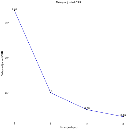 Once we calculate the delay-adjusted CFR for \(t = 0,2,..., 3\), we can draw its curve, as shown in the figure below.